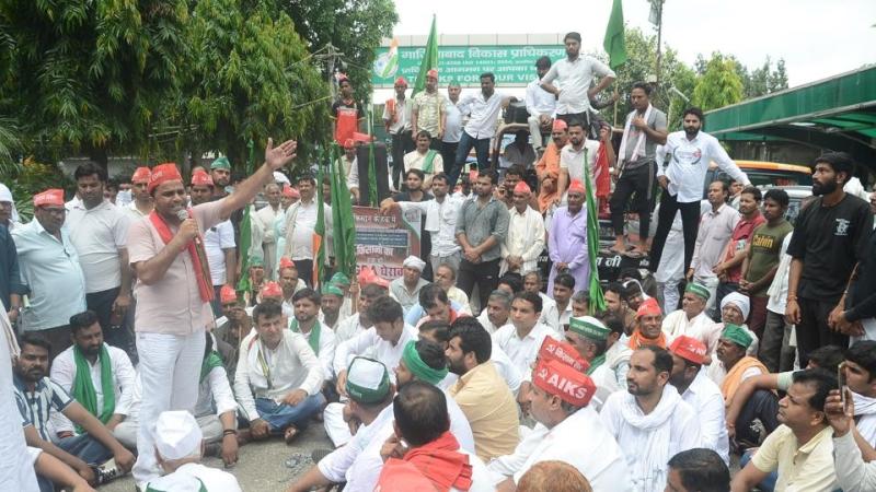 बिल्डर की FIR के बाद किसानों का वेव सिटी थाने पर जमावड़ा